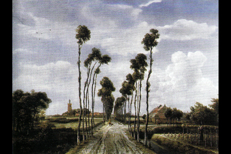 Typisch für Meindert Hobbema ist die klare Komposition mit Wegen und Baumreihen, die den Blick führen. Das Bild lädt dazu ein, über Perspektive, Bildaufbau und das Verhältnis von Natur, Nutzung und Landschaft nachzudenken.